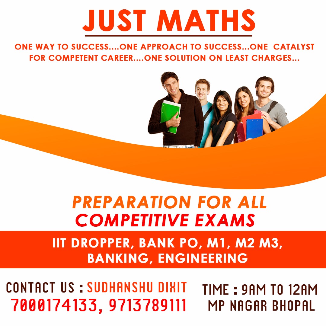 Address: JUST MATHS, C-12 SECOND FLOOR, ZONE 2, BEHIND PRAGATI PETROL PUMP, MP NAGAR